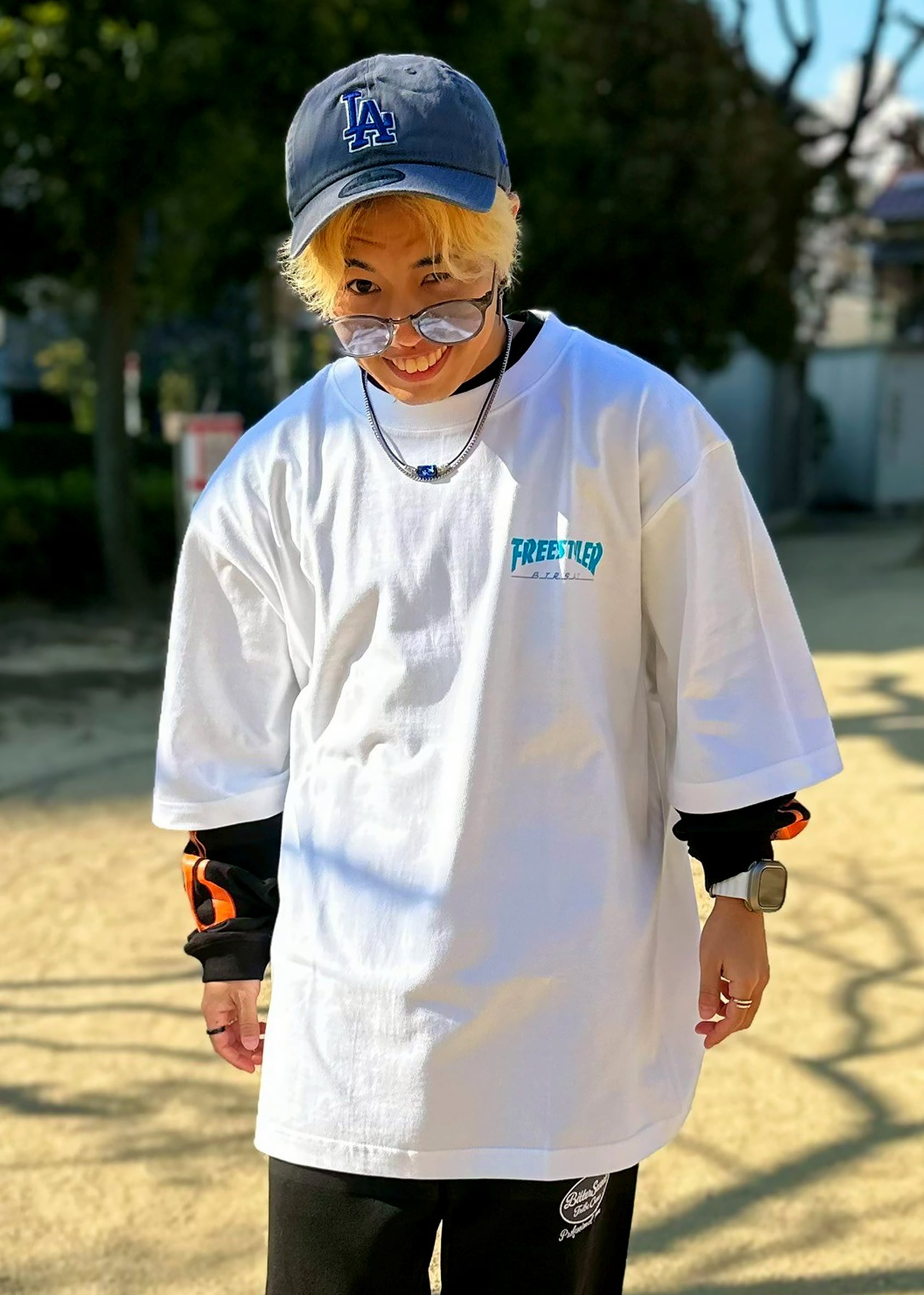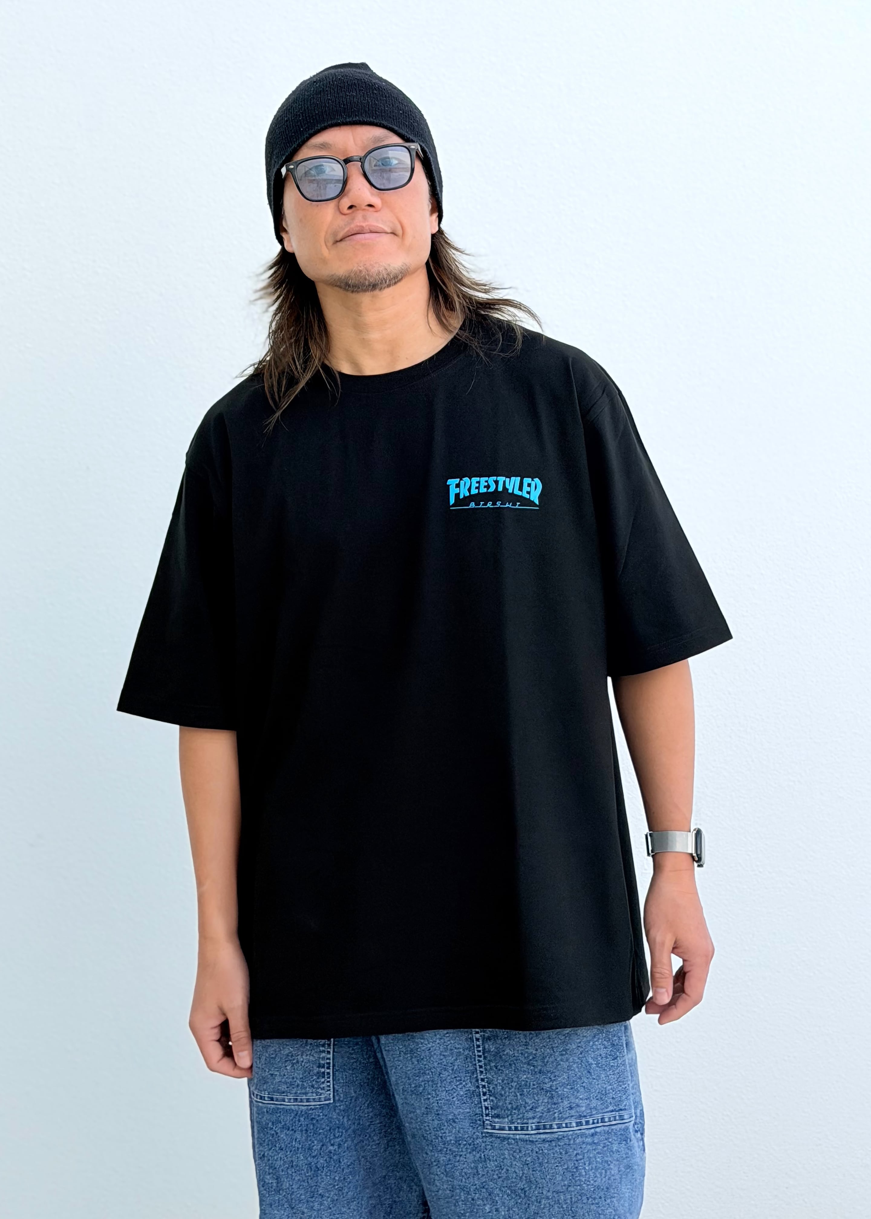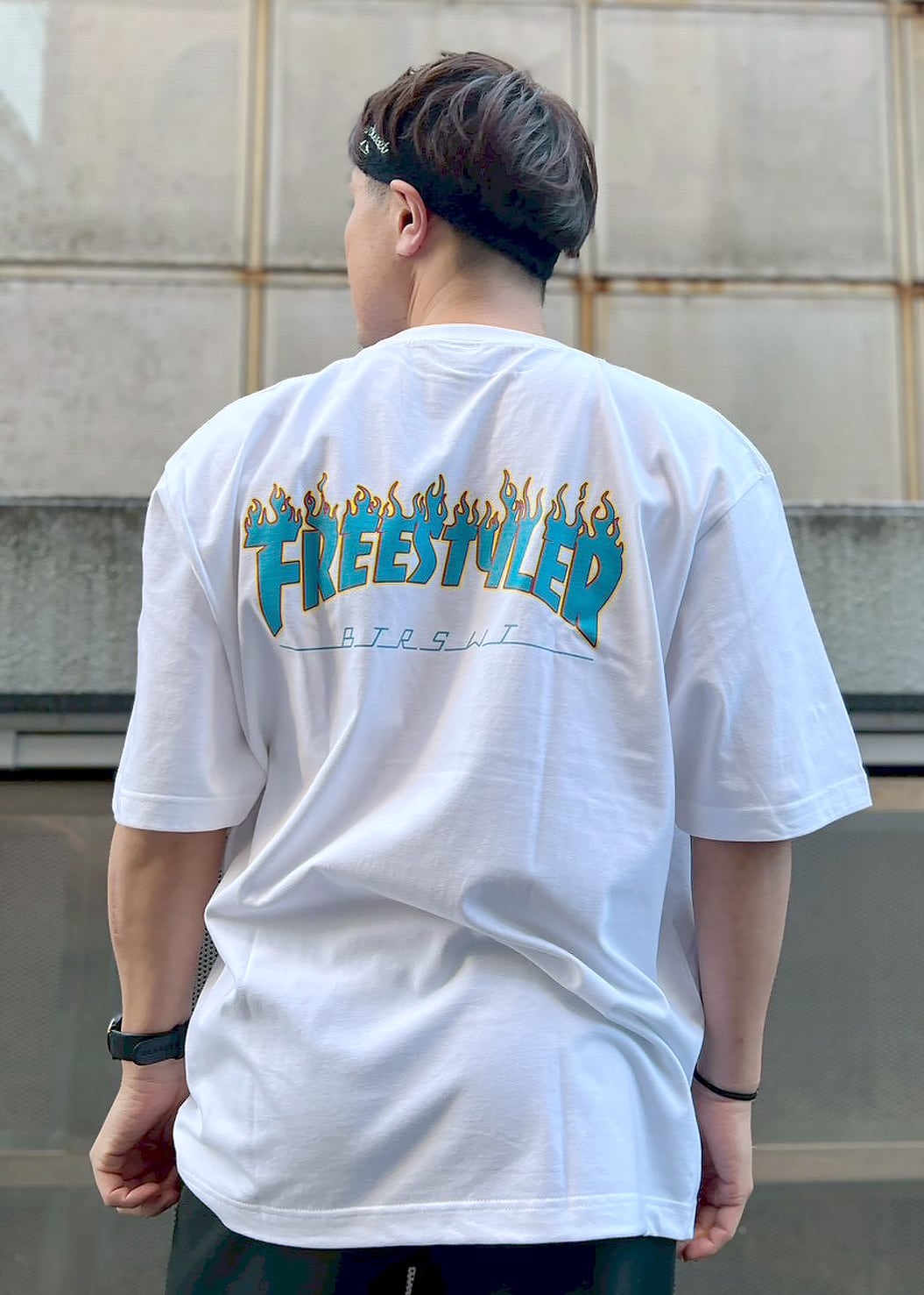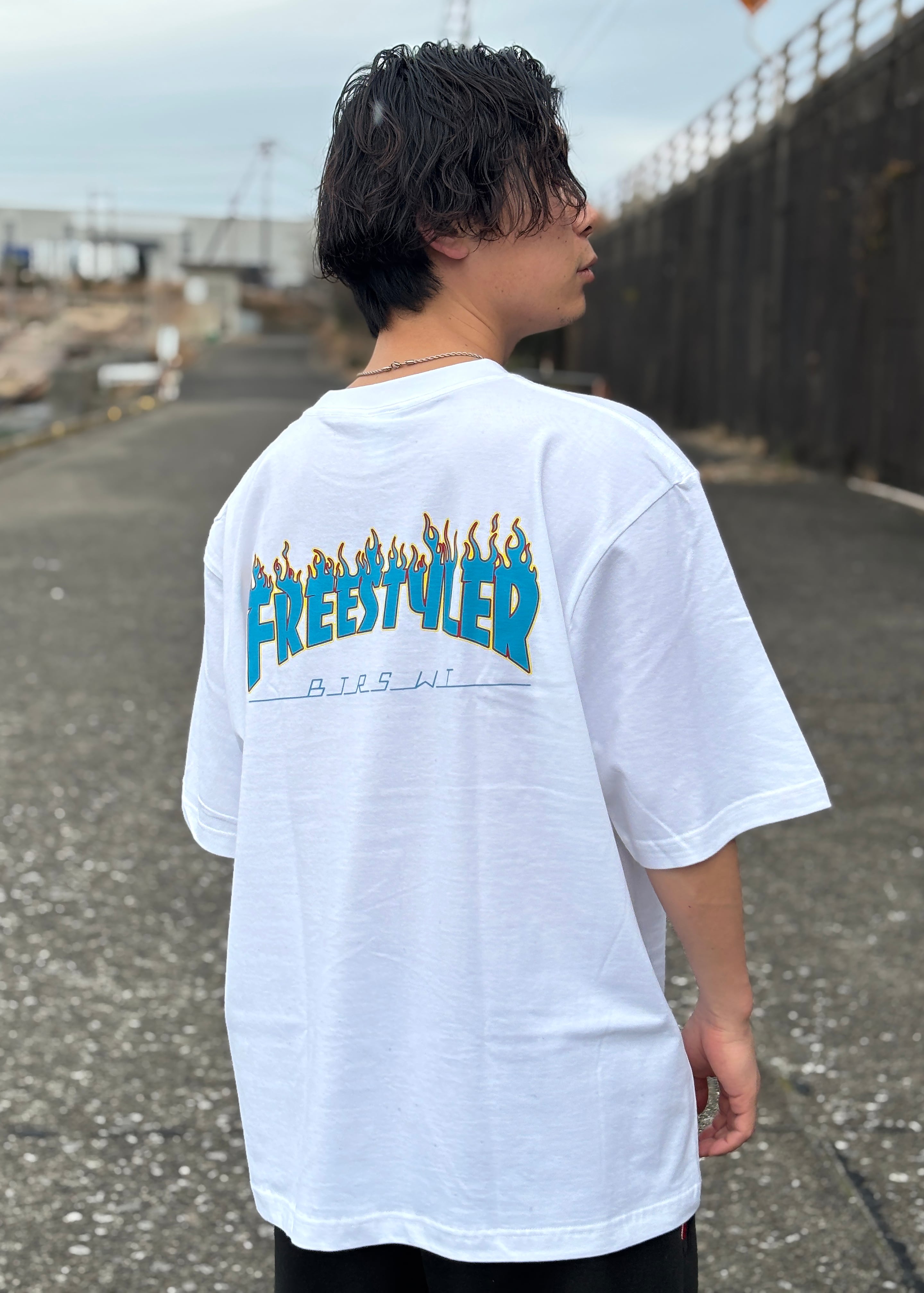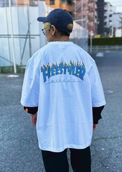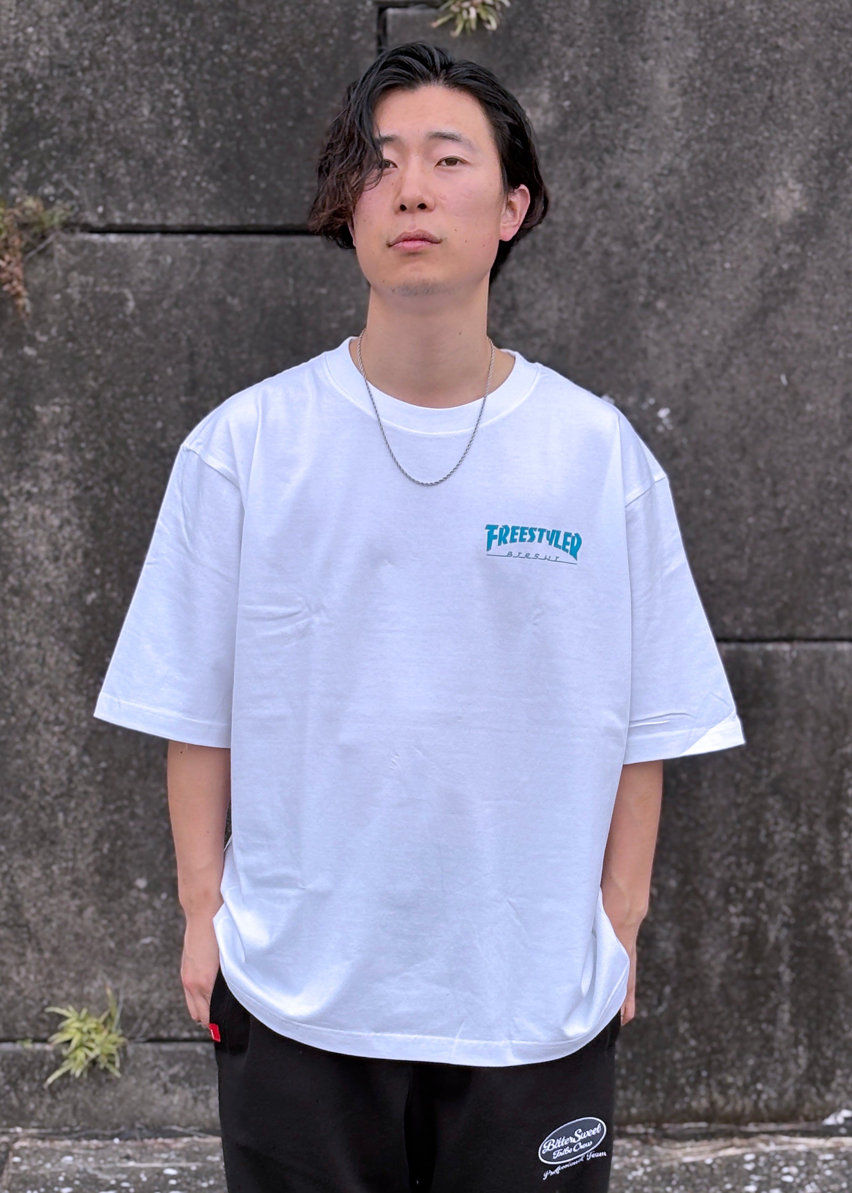 ストリートイメージの魅力を詰め込んだ"BS FREESTYLERS FLAME LOGO BIG Tee"が登場です。肩から落ちるゆったりサイズのTシャツに、フレームロゴが映えるデザインで、どんなスタイルにもアクセントをプラスします。シンプルさの中にインパクトを秘めたアイテムです。